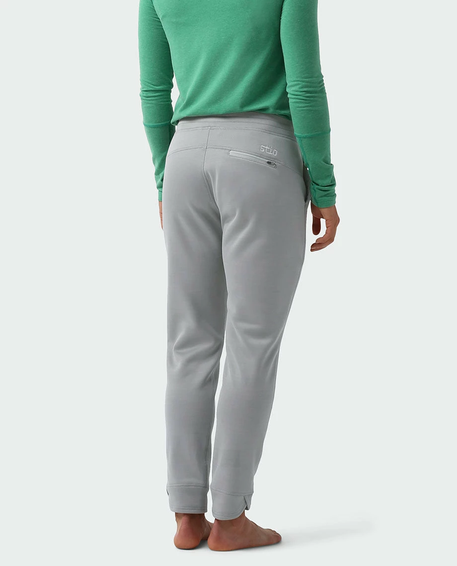 Perfect for wearing home from the gym, to the coffee shop after mid-week dawn patrols, or kicking it in the lodge after a well-deserved sauna session, the Gannett Peak Pant is a modern before-and-after pant that has down time dialed. This sleek, easy-wearing pant’s lightweight Karuishi® fleece features a smooth outer and soft, ultra-comfortable brushed interior. The pant’s flattering yet subtle feminine silhouette keeps you ready to get up and go. A zippered pocket stashes a key or card, and the articulated shape and elastic drawcord waistband elevate the comfort quotient.