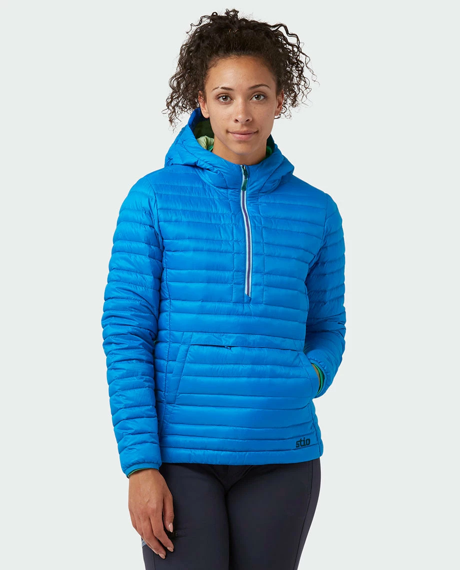 Combining premium technical materials with laid-back yet flattering style that fits like your favorite hoodie, the Pinion Pullover is perfect for chilly camp nights and breezy summer concerts. Featuring a lightweight, abrasion- and weather-resistant Pertex® Quantum ripstop shell, the Pinion Pullover packs lightweight, cozy warmth thanks to its responsibly-sourced 800-fill HyperDRY™ water-repellent down. The pass-through front pocket keeps your hands warm when you’re relaxing around the campfire or strolling downtown for cocktails, and the zippered kangaroo pocket doubles as a stuff sack and turns the jacket into a soft, comfy camp pillow.