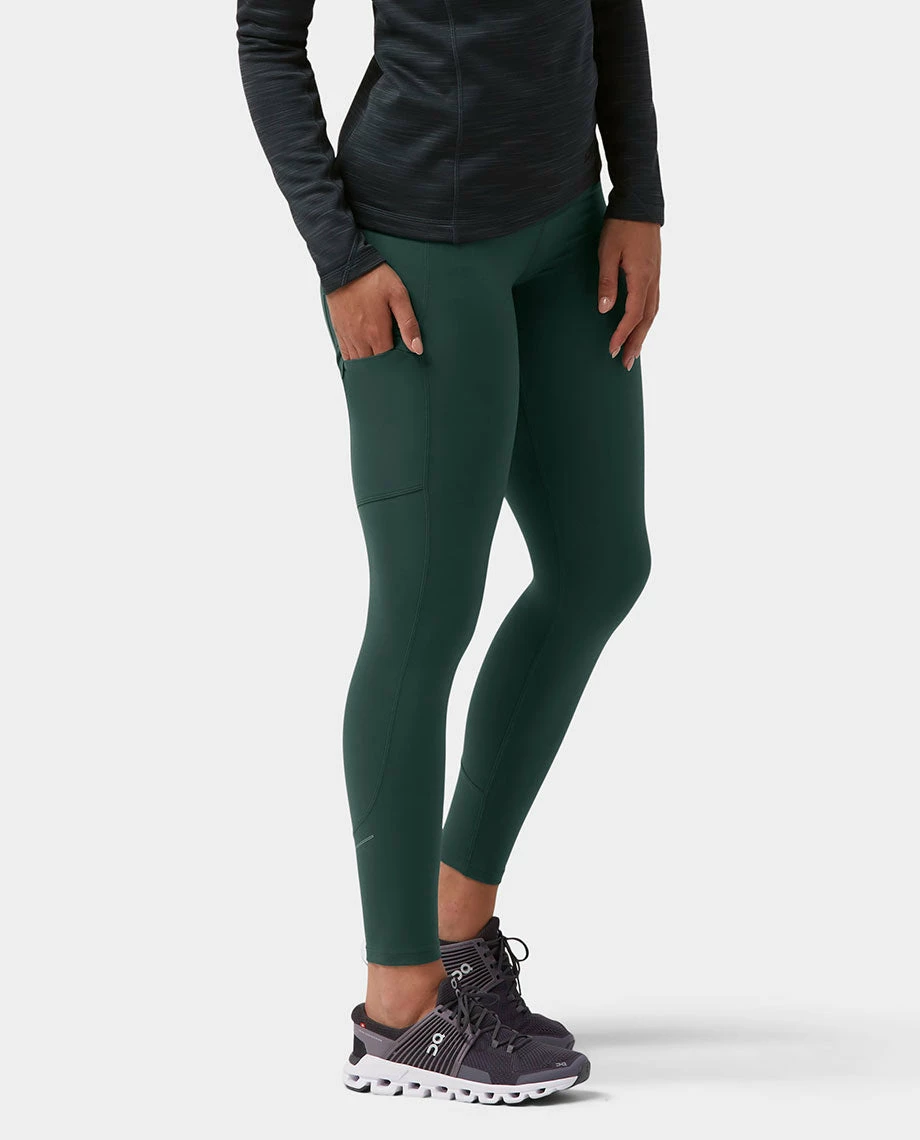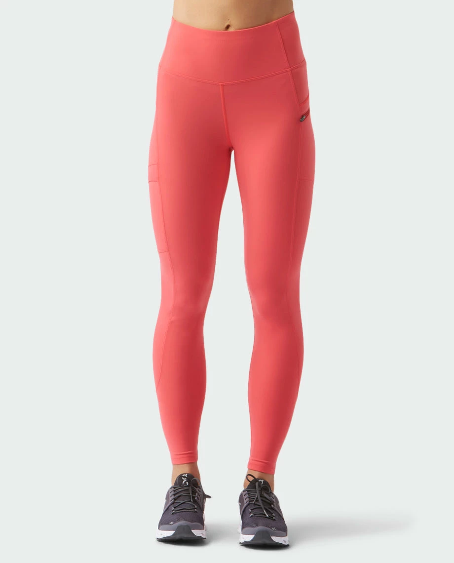 Long runs and race days deserve a tight built for endurance. Our athletic design finds inner strength from a nylon/spandex fabric that is tough enough to withstand brush, formulated to enhance wicking and treated to reduce odor whether grinding out a tough training run or sweating through a sufferfest. Wide waistband comfort, higher rise coverage and a full-length cut combine for a functional-yet-flattering fit. Left zippered hip and right thigh stow pockets stash keys, cards or phones safely and securely.
