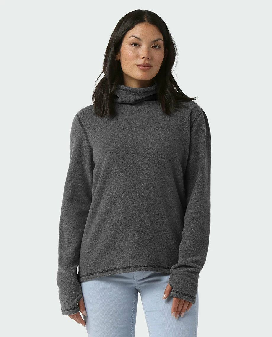From cold days in the office to fall weekend getaways and everything in between, the Turpin Fleece Funnel Neck is a sophisticated, easy-wearing fleece top that elevates the cozy quotient wherever the chill finds you. Made with REPREVE®, a recycled heathered microfleece that offers the warm, natural look of wool with stretchy, breathable performance, this cozy, relaxed-fit pullover is the perfect addition to any chilly day at home or away. The loose, funnel-style collar features a longer length that folds over or casually stacks for variable style. Flatlock seams offer premium next-to-skin softness, and thumbhole cuffs aid in layering and add a comfortable touch.