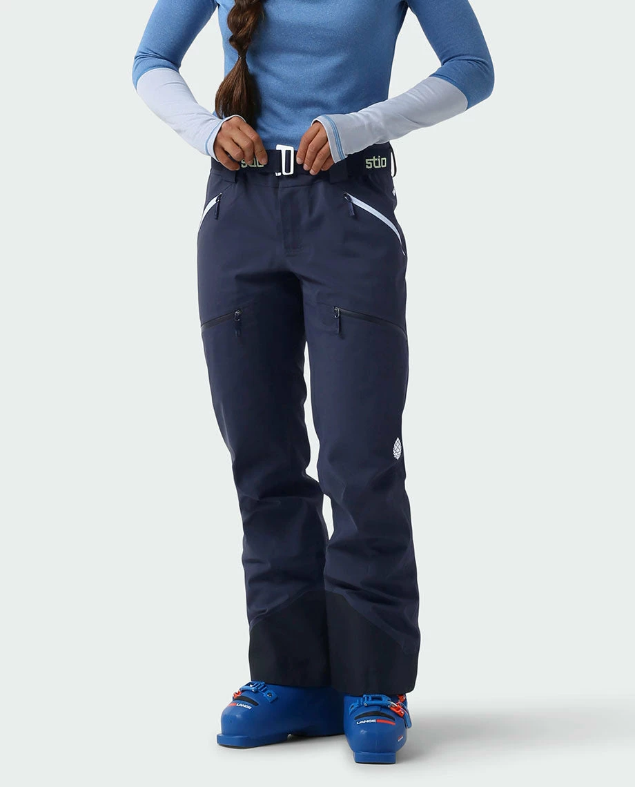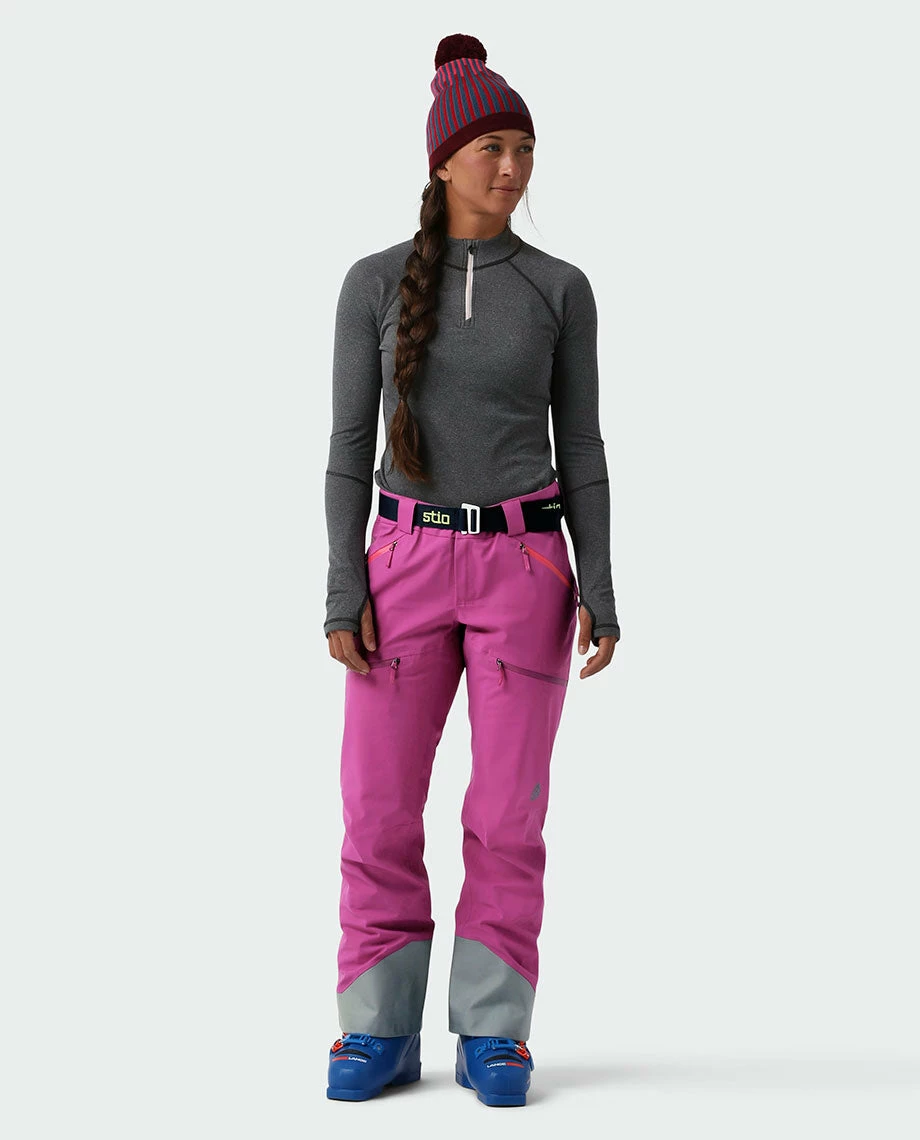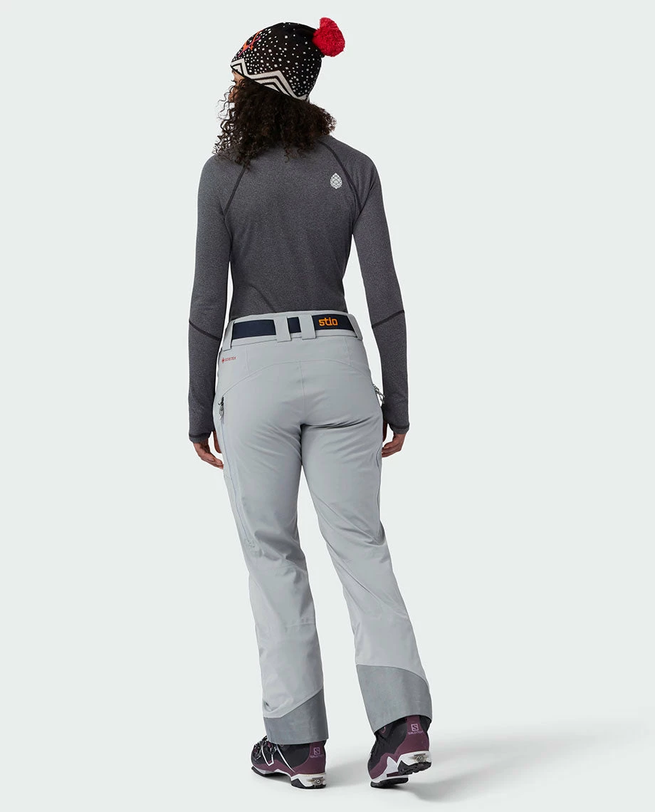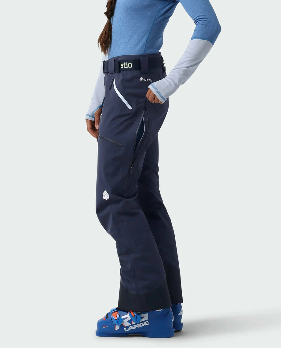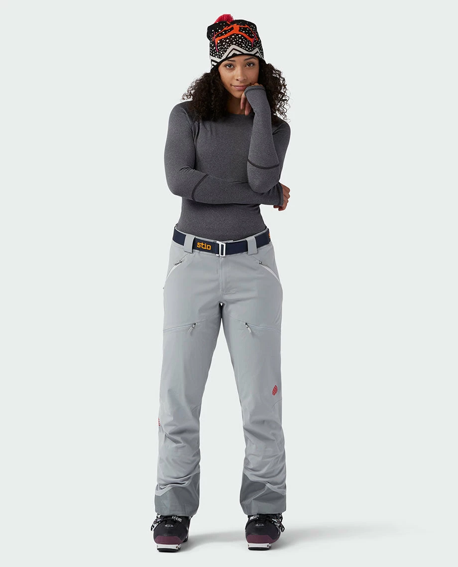 In its element when it’s storming sideways, our credentialed pant never skips a ski day due to harsh weather. GORE-TEX 3L technology seals out unpredictable big mountain weather, yet adds a degree of warmth with a brushed, flannel-like interior texture. Strategically placed back thigh vents shed heat when hiking or skinning into heavy lines. Two thigh-high pockets—one with an internal bar-tacked loop and the other with a mesh media pocket—stash both lift-access or self-ascent essentials bulk-free. A full-wrap CORDURA® kickpatch sheds wear, while a gusseted, articulated shape enables fluid freeride style and a removable Stio belt dials the fit during big vertical days.