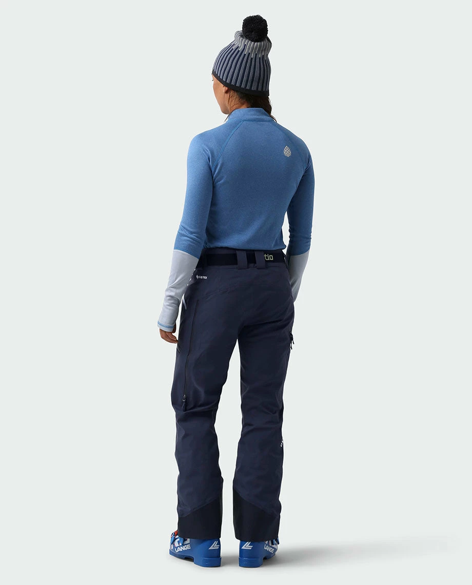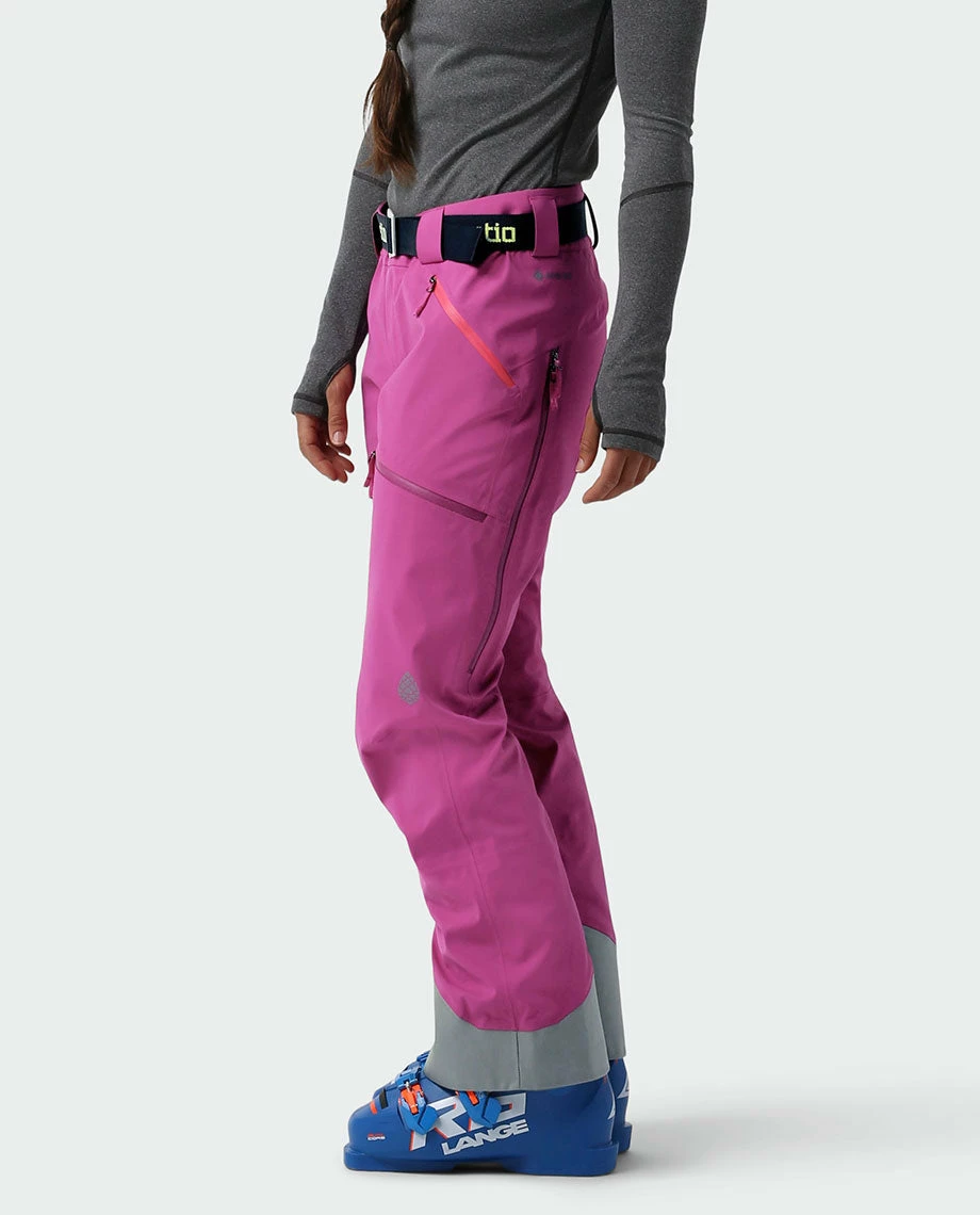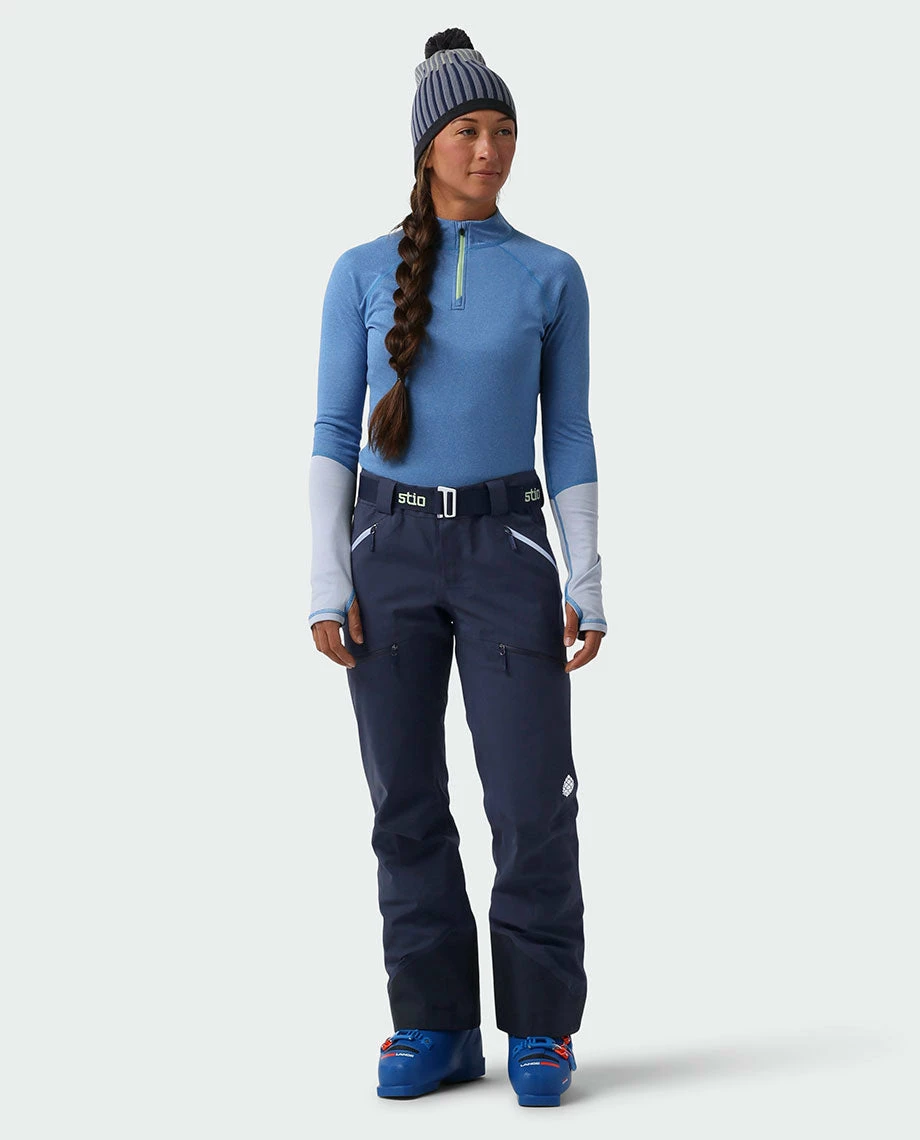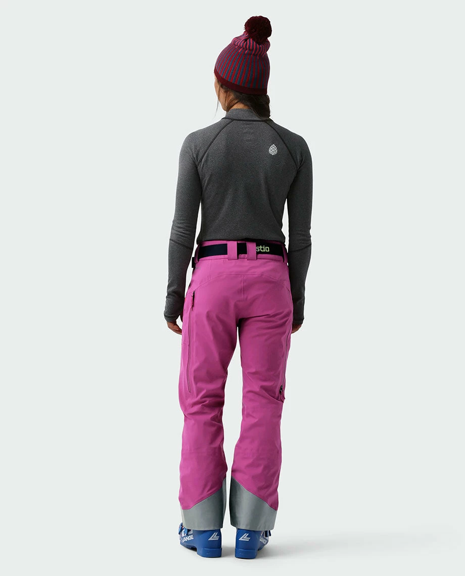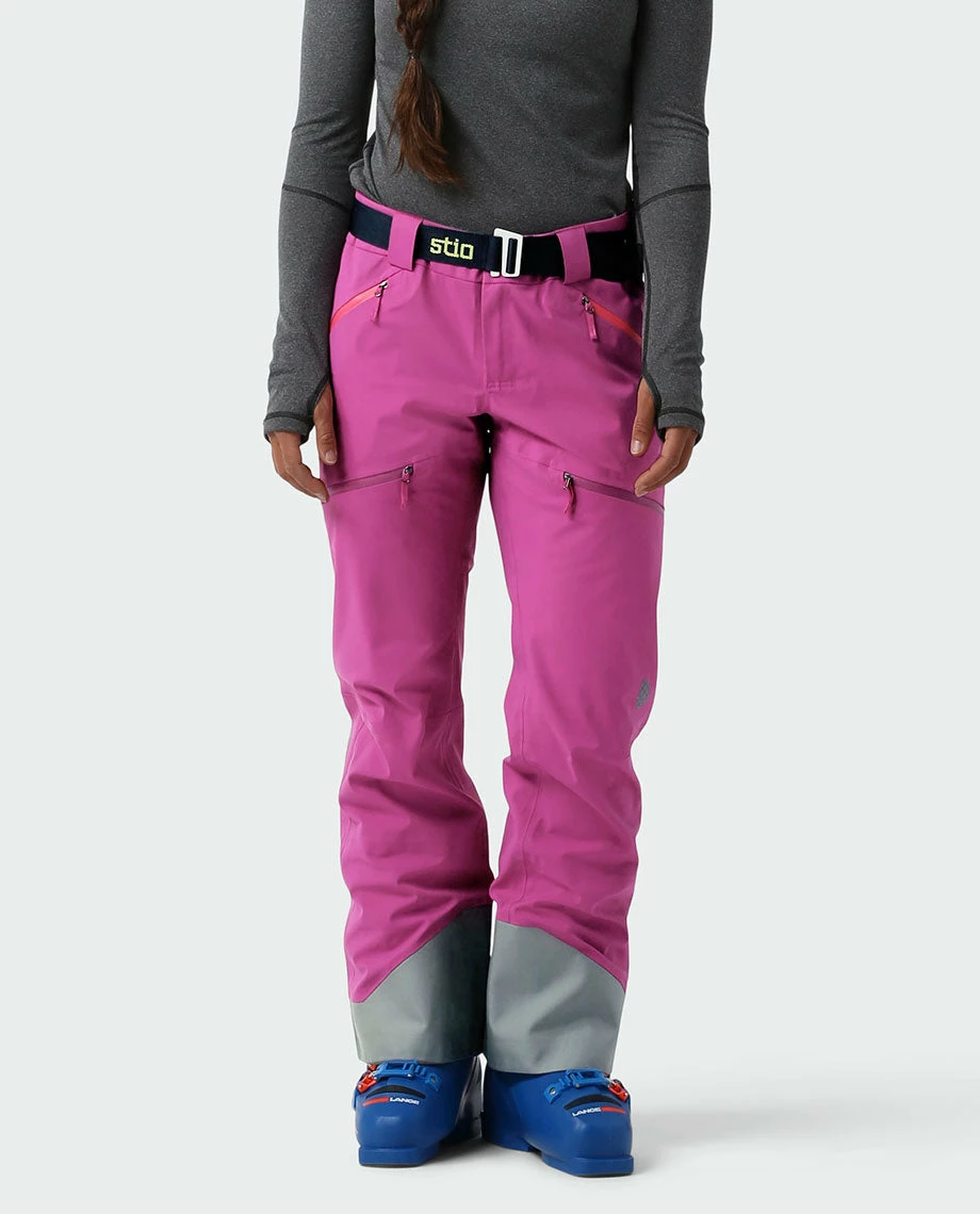 In its element when it’s storming sideways, our credentialed pant never skips a ski day due to harsh weather. GORE-TEX 3L technology seals out unpredictable big mountain weather, yet adds a degree of warmth with a brushed, flannel-like interior texture. Strategically placed back thigh vents shed heat when hiking or skinning into heavy lines. Two thigh-high pockets—one with an internal bar-tacked loop and the other with a mesh media pocket—stash both lift-access or self-ascent essentials bulk-free. A full-wrap CORDURA® kickpatch sheds wear, while a gusseted, articulated shape enables fluid freeride style and a removable Stio belt dials the fit during big vertical days.