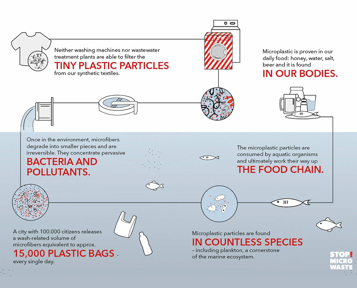 Every textile loses microfibers, but it is the synthetic materials (polyester, acrylic, nylon, etc.) that shed the harmful fibers. The Guppyfriend Wash Bag reduces fiber shedding, which protects your clothes and offers a scientifically approved solution against microplastic pollution from washing.