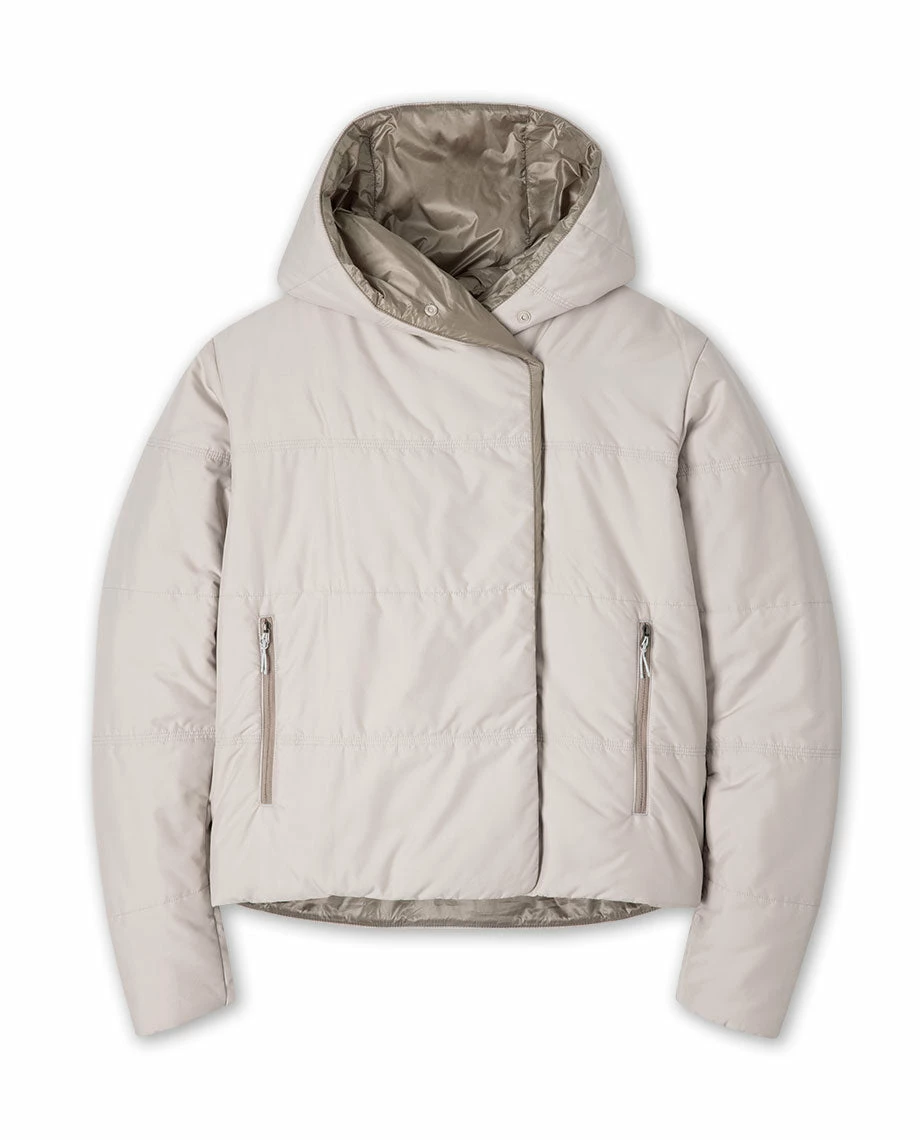 Where energetic style meets mountain chic, our new East Butte combines quilted insulation with intentional detailing. An aesthetic antidote to early fall frosts, the hooded jacket delivers an instant warming effect with PeakFillโข 50% recycled, synthetic insulation and expresses distinctive flair with an asymmetrical crossover placket and offset hidden zipper. An adjustable hem trims a straighter, mid-length fit and elevates any look, whether paired with pants, leggings or joggers.