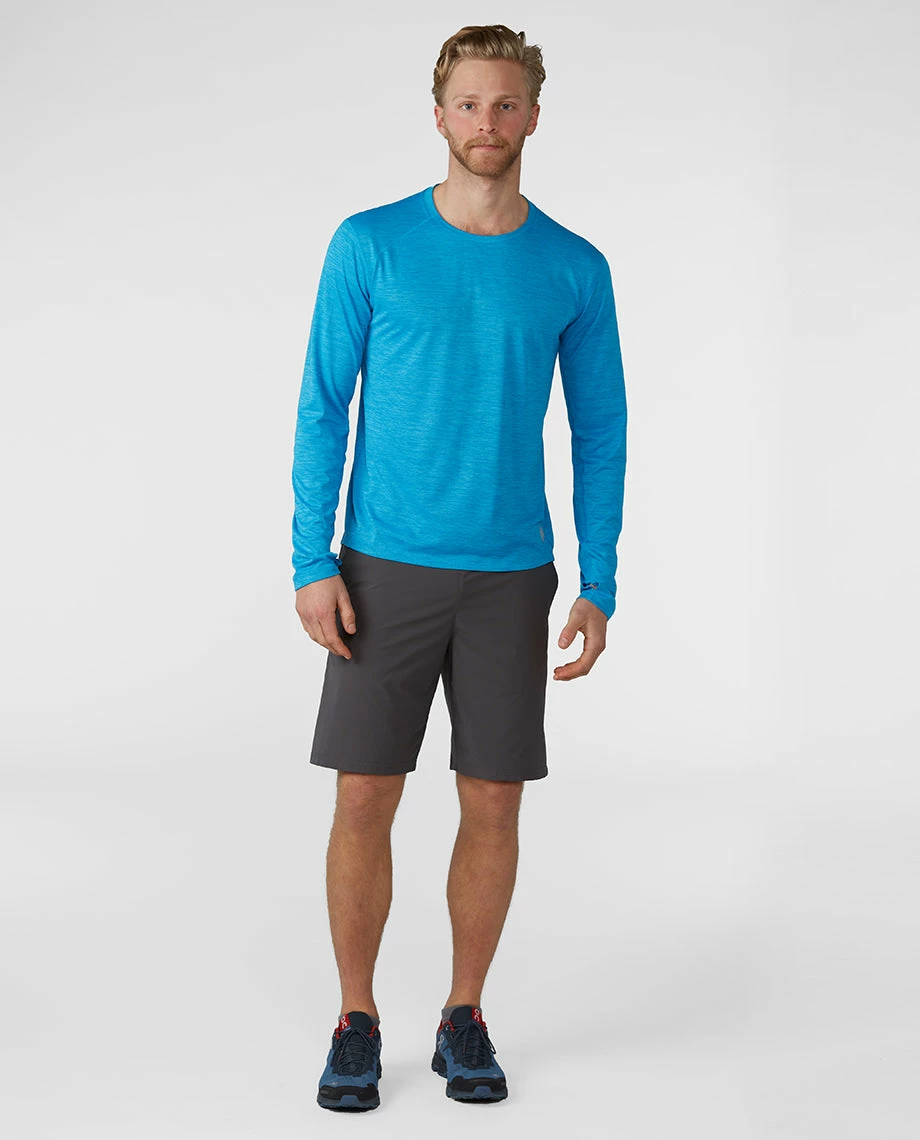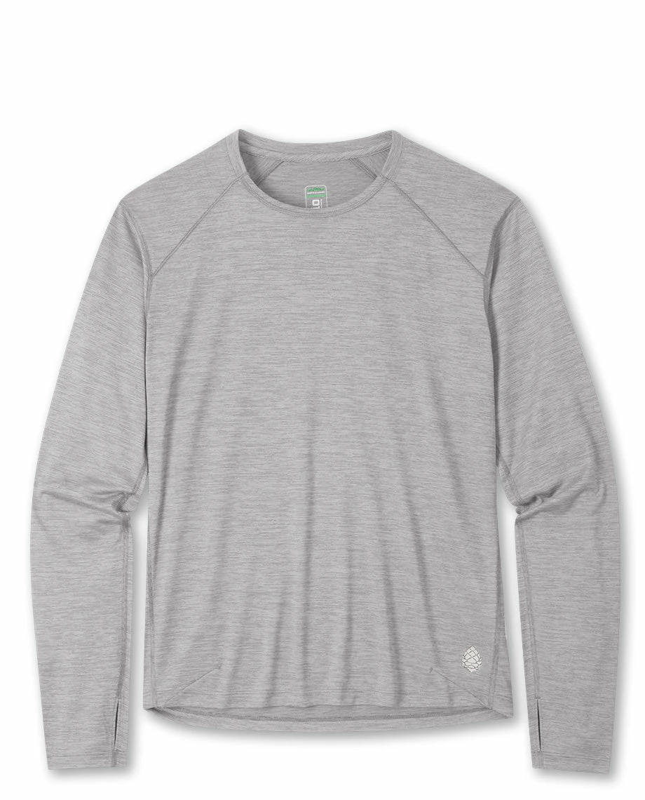 High mountain, high aerobic activities demand both exceptional wicking and exceptional cooling. Our long-sleeve tech tee delivers both dynamically due to Floe™ fabric that wicks and cools more aggressively as body heat climbs to regulate temps during runs, rides or climbs. The fabric is technical but the fit is not too tight or constrictive—instead finding middle ground whether going packless or hefting a heavier load to a high point. On-seam thumbholes keep arms down, subtle drop tail adds coverage on the bike while reflective hits—in both threads and labels—add visibility. Anti-odor keeps it smelling mountain fresh.