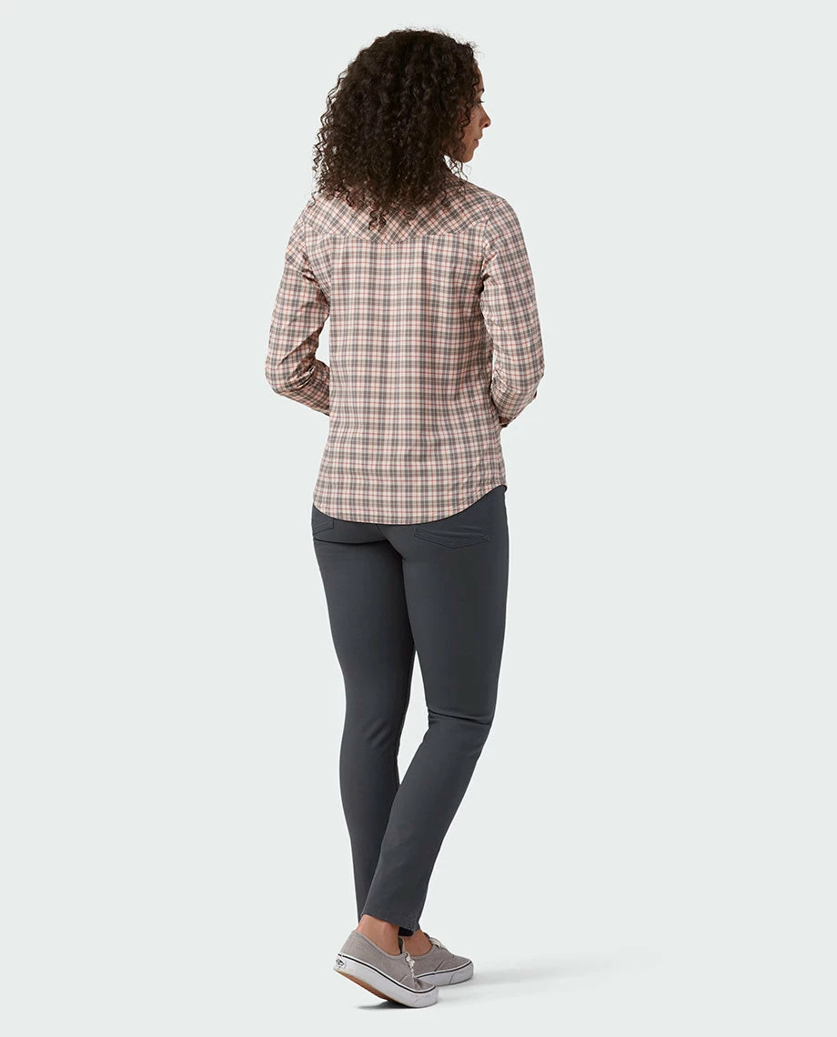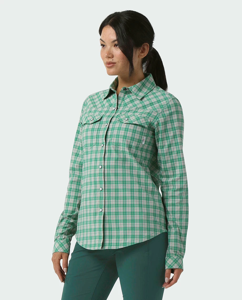 A wind- and water-resistant button-up that’s a staple of any active mountain wardrobe, the hikable, bikable, skiable Eddy Shirt is cut and styled just for women. With its soft, stretchy UPF 50+ fabric, slightly relaxed fit and subtle, western-inspired detailing, the Eddy strikes a premium balance of style and technical performance from the ridgeline to the riverbank.