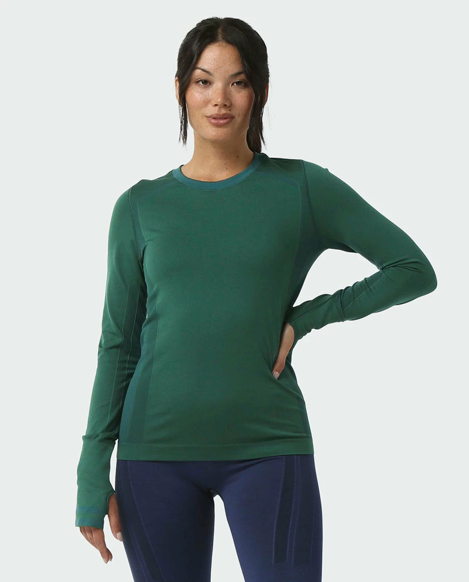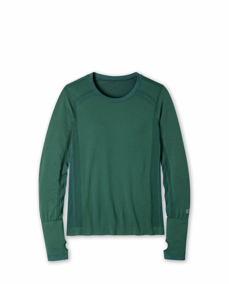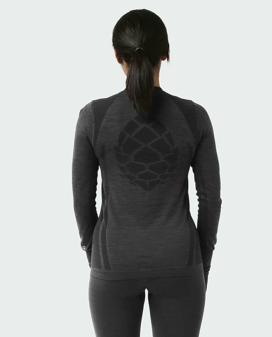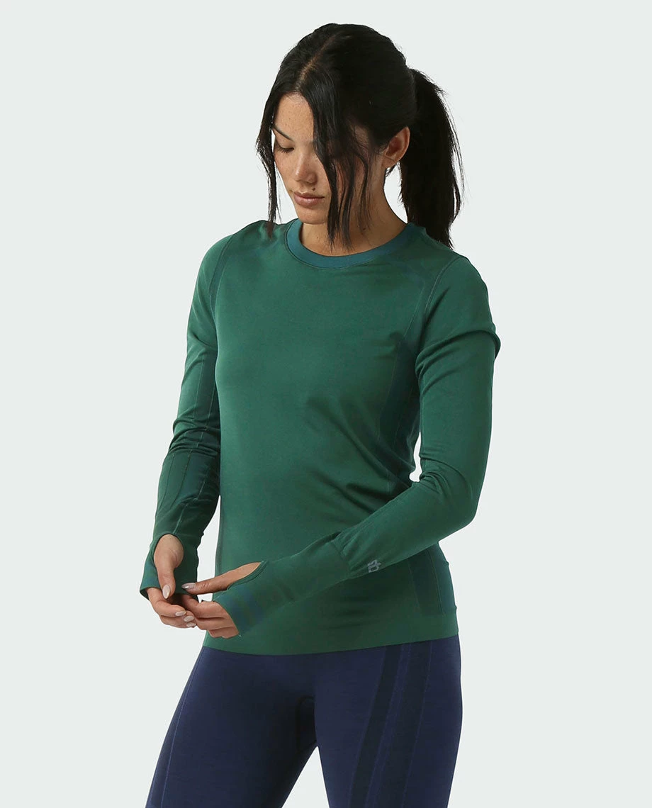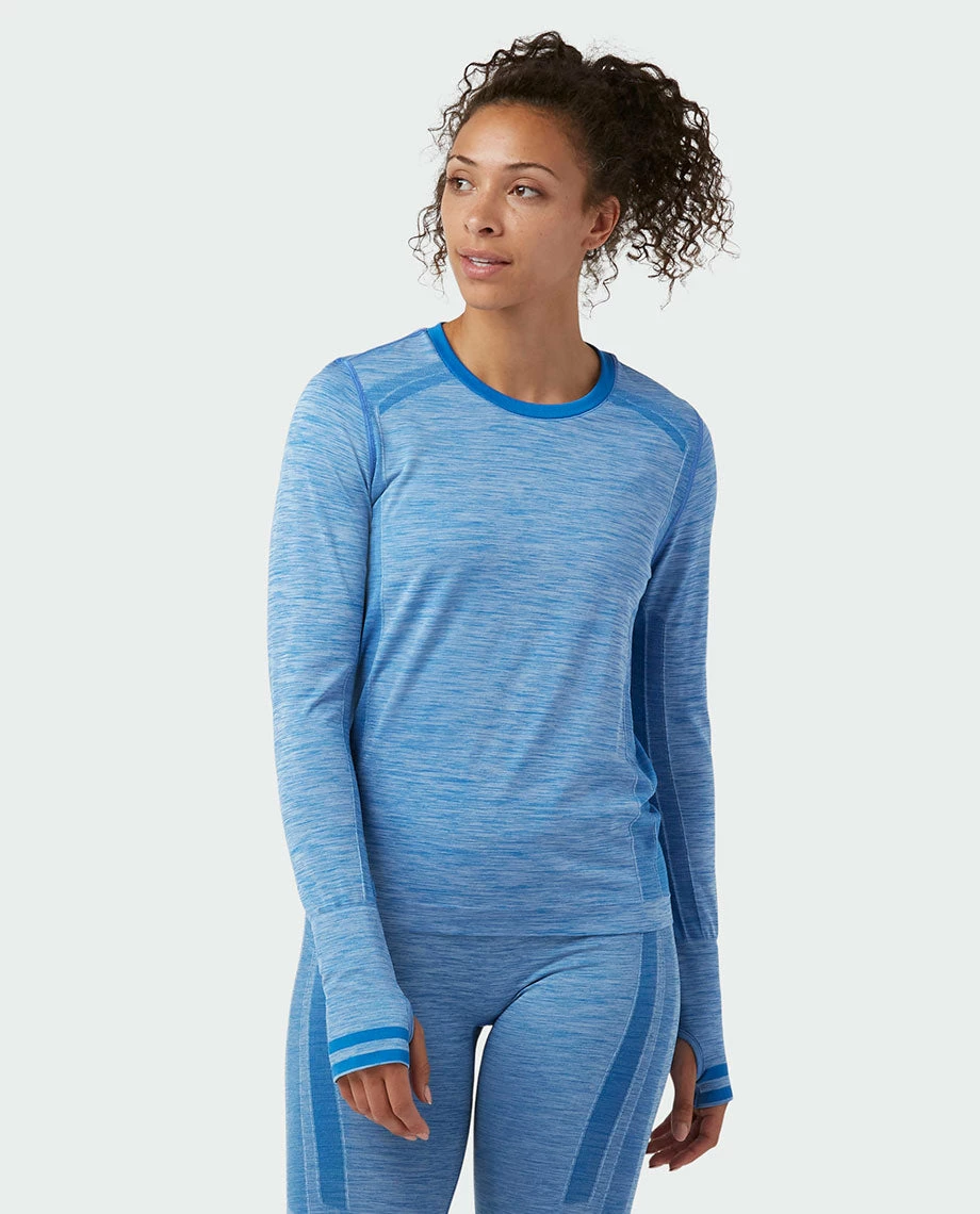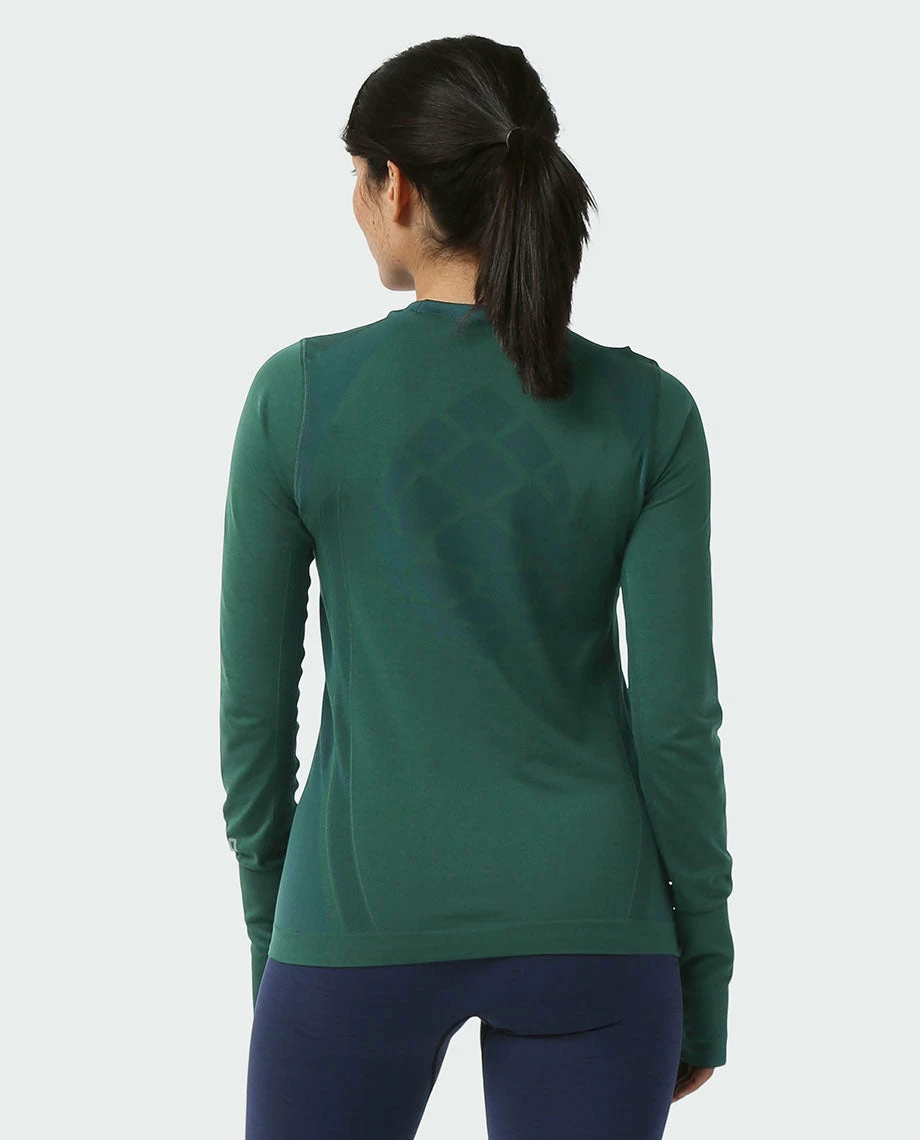 Extended workouts call for complete comfort and our seamless crew hits that stride due to a textured knitting process that sheds seams, increasing range and preventing chafe. Intended as a next-to-skin layer for running, biking, skiing or any outdoor exercise, the extremely athletic layer harnesses poly knit material to wick moisture, regulate temperature and layer without friction. Pinecone mesh zones increase breathability during high output activities or intervals.