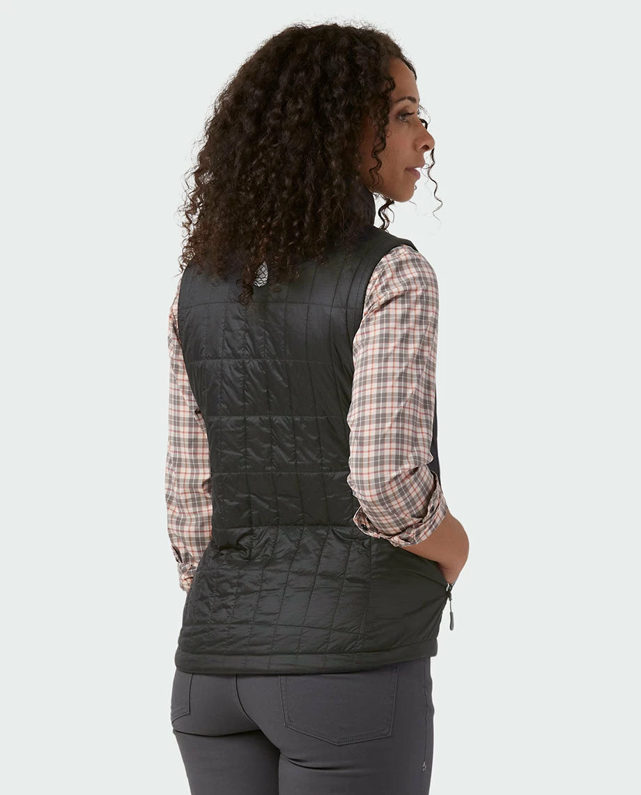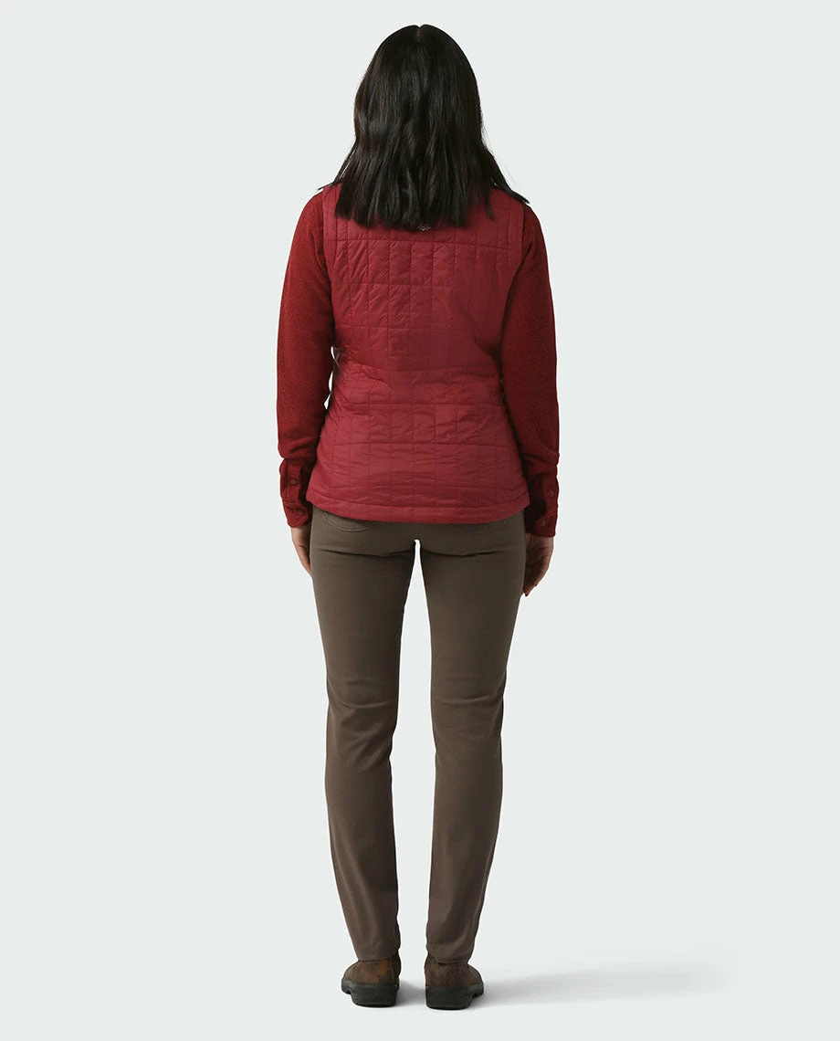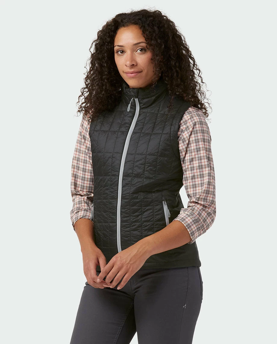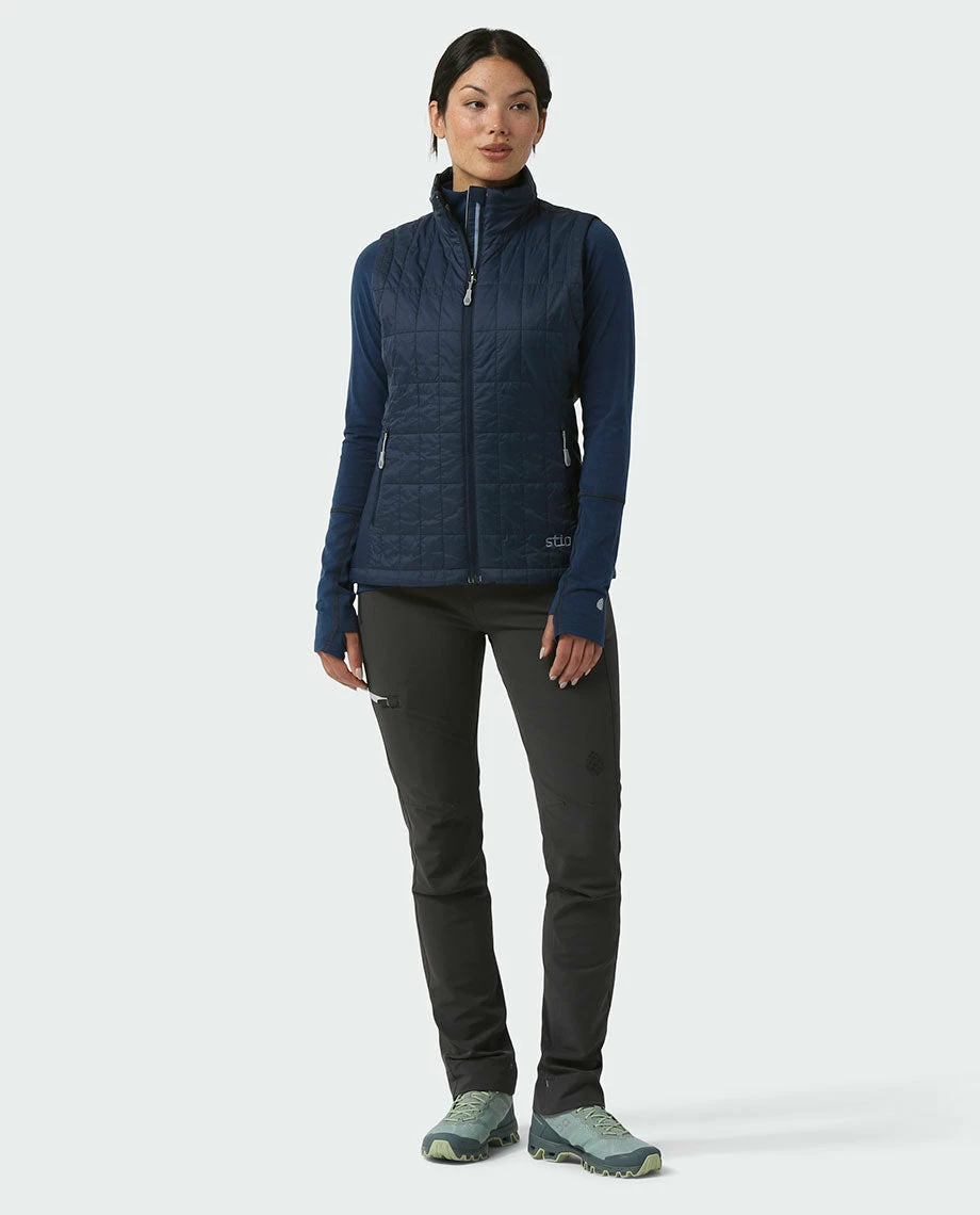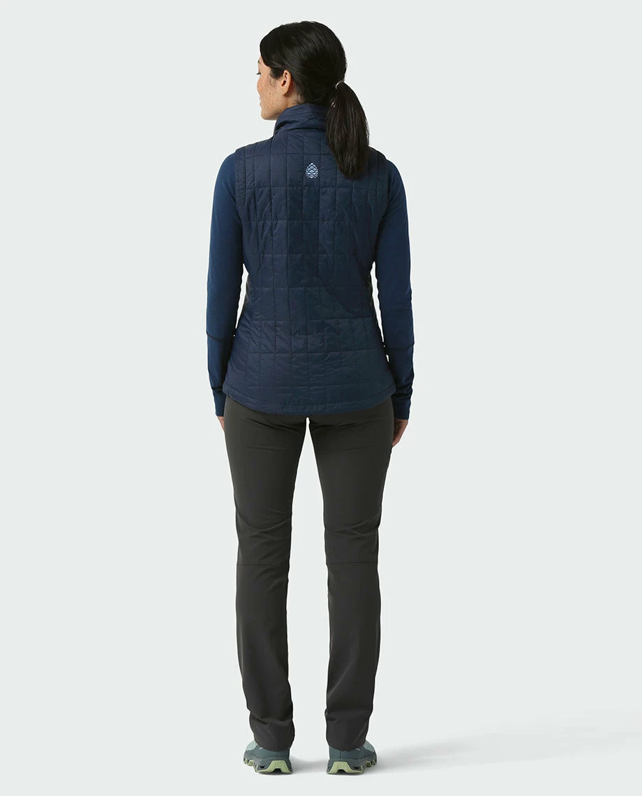 As a layer on fall hikes, camping trips or early morning bike commutes, the Azura Vest provides lightweight and compressible insulation you can depend on. It features modern quilting filled with 60g of PrimaLoftยฎ Gold Eco, princess seams for a feminine fit, a fully adjustable hem with low-pro cord locks and zippered hand and interior pockets.