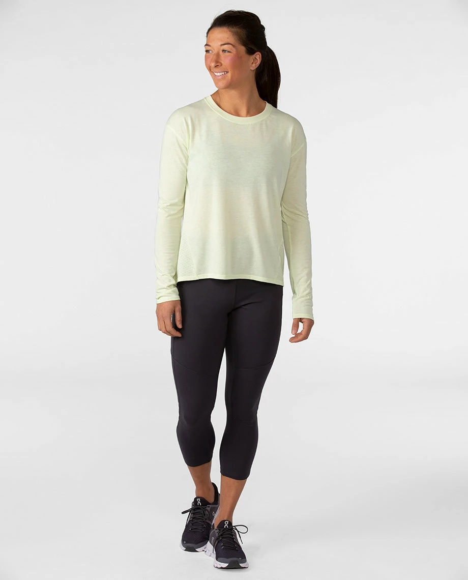 Slightly breezy and athletically sophisticated, our forward-thinking Divide Shirt pairs wicking drireleaseยฎ performance with pointelle panels for enhanced breathability. The fabric dries four times faster than standard cotton yet still feels incredibly soft on skin. A moderate neckline sits comfortably relaxed, while a slight-drop shoulder, straight body and forward-facing side seams blend fit, active shape and casual flexibility. Elliptical drop tail hem adds coverage when running, biking or stretching out at the studio.