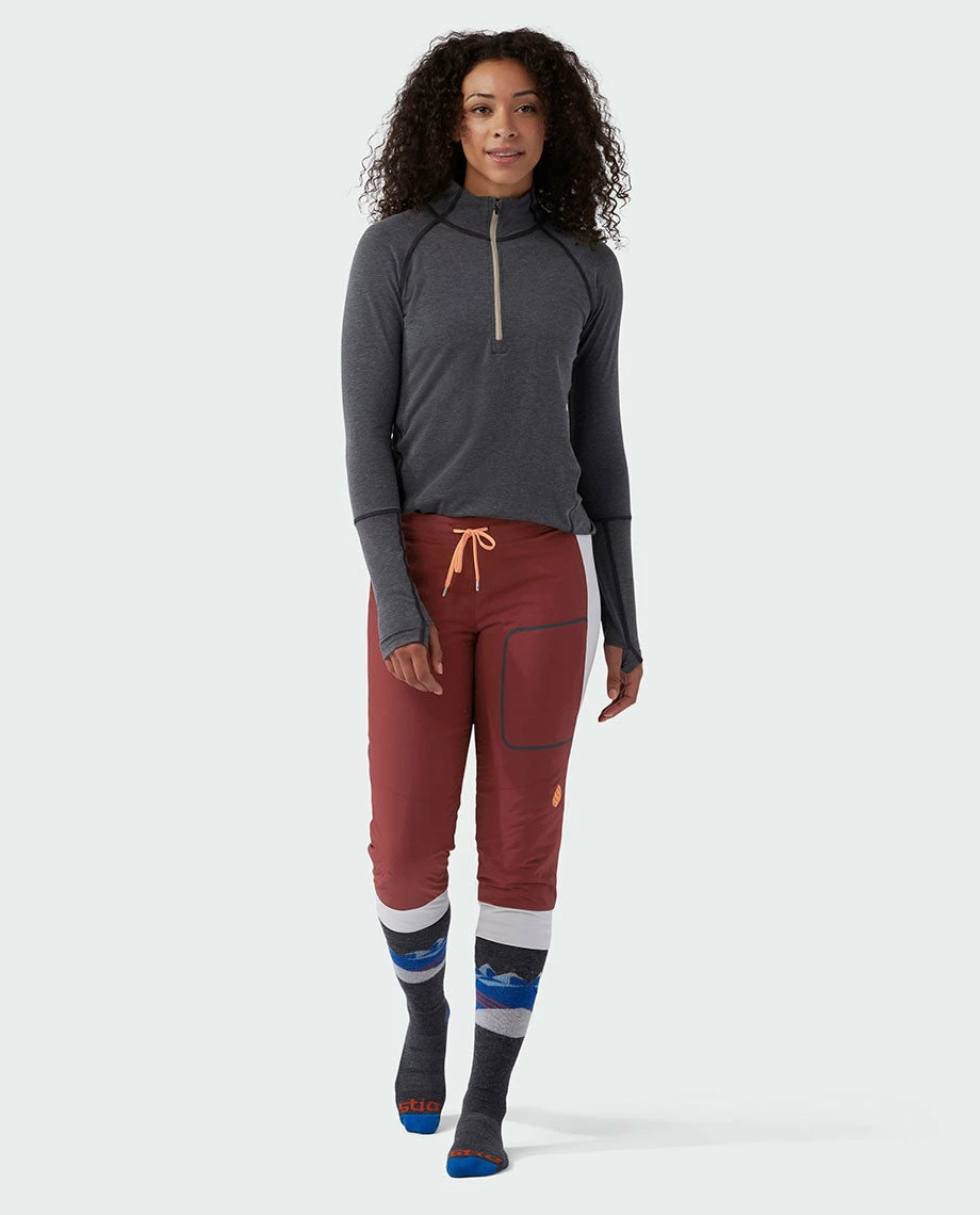 We’re obsessed with the Fernos Knicker, it finds the fine skier’s line between frictionless mid-layering and highly breathable warmth โ think super light, silky-smooth comfort for a chilly chairlift ride, a cold wind and a cozy apres. The articulated, capri-length midlayer packs Peakfillโข Active Insulation 40g that adds warmth during cold smoke conditions yet allows airflow when gaining vertical. A true skierโs silhouette stops short of buckles to eliminate bunching, binding or hassling when booting up in the lodge. Side stretch panels enable a full range of motion, while an articulated cut shows athletic shape at the ski cabin or in the seasonal locker room.
