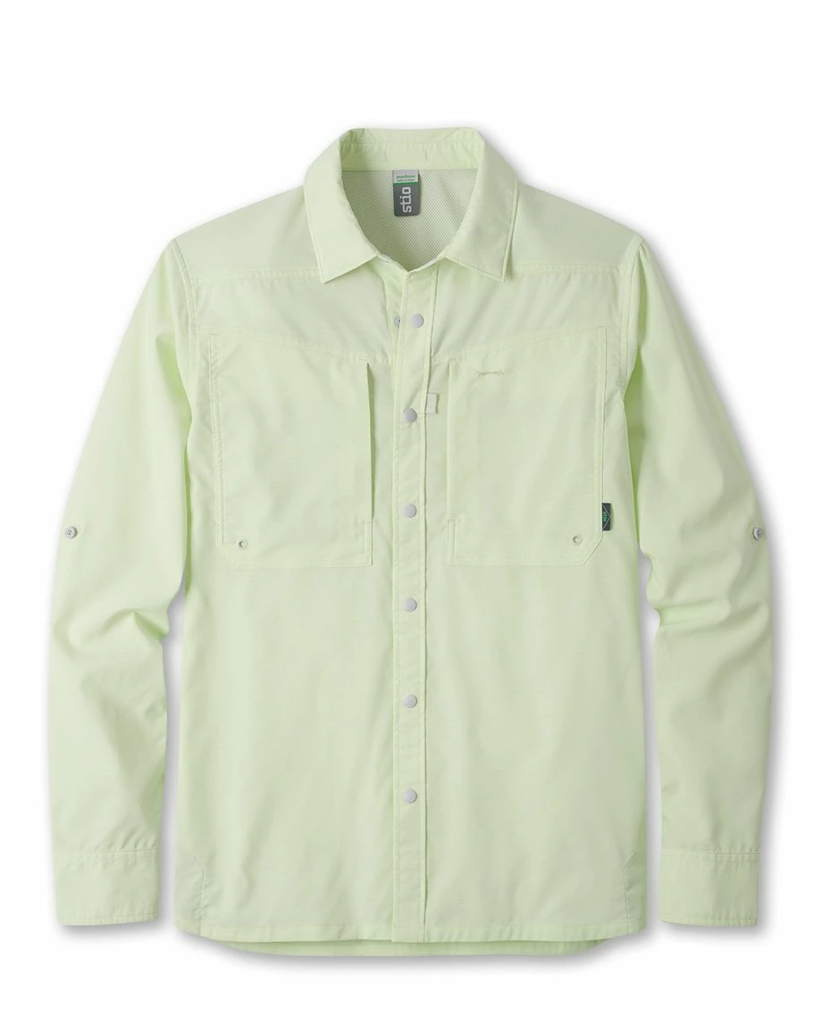 The first Eddy was built for the river, so it was natural to build a fish-focused version for our local float-or-wade culture. For this purpose, we harnessed Confluxโข quick-dry, water-repellent and UPF 50+ ripstop fabric for critical wear area durability, then added mesh side seams and back vents for cool airflow out on the river. Self-draining, fish-on chest pockets stow fly boxes and hold stealth interior mesh pockets for floatant, desiccant or tippet. Dialed in with a sunglass wipe, a hemostat attachment, roll-up cuff tabs and a sunshade collar, the Guide Shirt pulls off a relaxed style that still feels at home cracking refreshments on the tailgate.