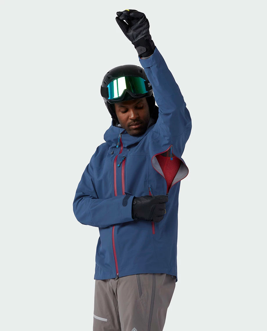 The latest addition to the award winning Environ collection, the XT is built for the minimalist who never uses his powder skirt and the purist who knows exactly what he needs. Without sacrificing an ounce of durability and protection, the XT offers a streamlined feature set with high set hand pockets for easy access when wearing a pack. Built with the same fabric as the award-winning Environ Collection, the XT features 3L Dermizax® waterproof/breathable fabric and is tough enough to take a beating, but still rolls up nicely for stashing in your pack. Cohaesive™ cord-lock technology on the hood and hem allow for one-handed adjustments and two-way underarm zip vents ditch excess heat. The fixed hood with a bonded brim fits over your helmet in full-on conditions and we added a zippered chest pocket, internal zippered pocket and drop-in stash pockets to secure your phone, gloves and other essentials.